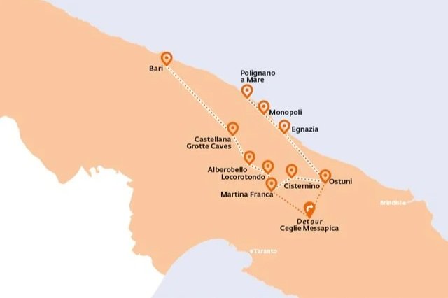Puglia stretches along Italy’s southeastern coastline, but its most interesting places are spread between the coast and the countryside.